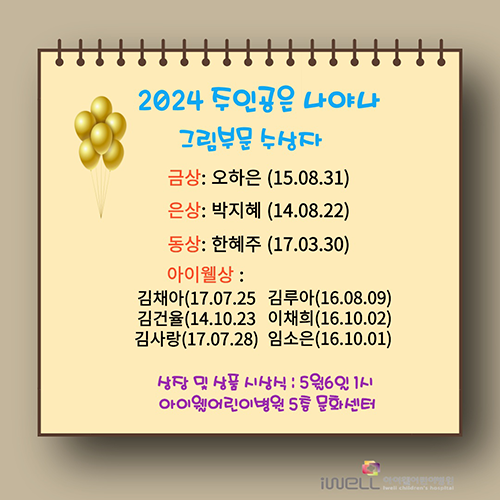 2024 주인공은 나야나 그림부문 수상자 페이지 정보 작성자 관리자 작성일24-05-01 15:35 조회5,213회 관련링크 이전글 다음글 목록 본문 2024 주인공은 나야나 그림부문 수상자 이전글 다음글 목록