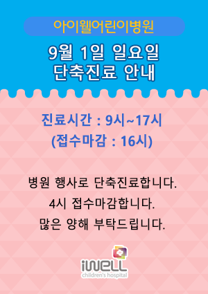 9월 1일 일요일 단축진료 안내 페이지 정보 작성자 관리자 작성일24-08-06 22:11 조회4,697회 관련링크 이전글 다음글 목록 본문 9월 1일 일요일 단축진료 안내 이전글 다음글 목록