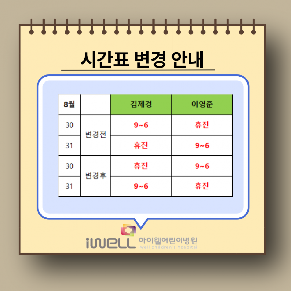 시간표 변경 안내 > 병원소식