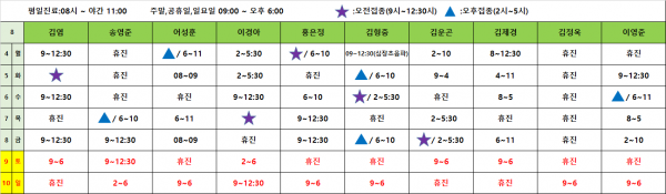아이웰어린이병원 25.08.04~08.10 진료시간표안내입니다. 페이지 정보 작성자 관리자 작성일25-07-31 10:50 조회2,659회 관련링크 이전글 다음글 목록 본문 진료시간표는 아이웰어린이병원 인스타그램에서도 확인가능합니다. 예약취소는 카카오채널을 이용해주세요 이전글 다음글 목록