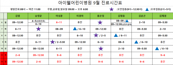 아이웰어린이병원 21.09.06~09.12 진료시간표입니다. 페이지 정보 작성자 관리자 작성일21-09-05 11:54 조회13,320회 관련링크 이전글 다음글 목록 본문 . 이전글 다음글 목록