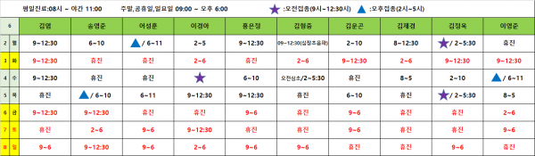 아이웰어린이병원 25.06.02~06.08 진료시간안내입니다. 페이지 정보 작성자 관리자 작성일25-05-29 15:22 조회3,777회 관련링크 이전글 다음글 목록 본문 진료시간표는 아이웰어린이병원 인스타그램에서도 확인가능합니다. 예약취소는 카카오채널을 이용해주세요 이전글 다음글 목록