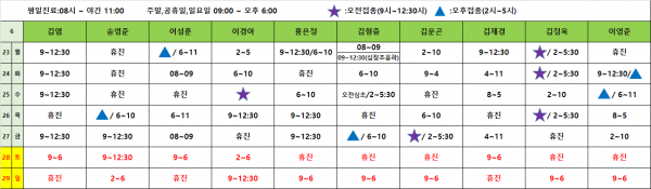 아이웰어린이병원 25.06.230~6.29 진료시간표안내입니다. 페이지 정보 작성자 관리자 작성일25-06-19 09:30 조회3,042회 관련링크 이전글 다음글 목록 본문 진료시간표는 아이웰어린이병원 인스타그램에서도 확인가능합니다. 예약취소는 카카오채널을 이용해주세요 이전글 다음글 목록