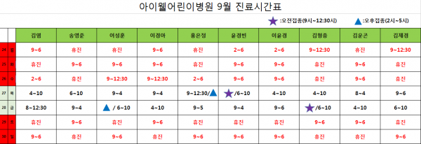 9월 24일~30일 변경된 시간표입니다. > 월진료시간표