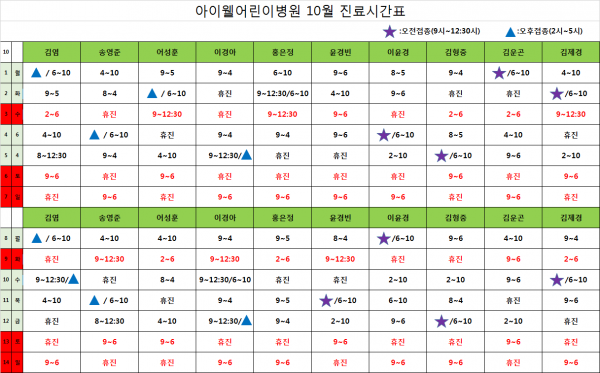 아이웰어린이병원 18.10.01~18.10.14 진료시간표입니다. 페이지 정보 작성자 관리자 작성일18-09-29 14:56 조회23,750회 관련링크 이전글 다음글 목록 본문 . 이전글 다음글 목록