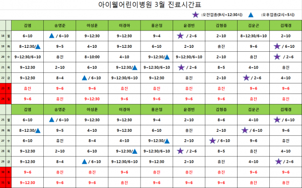 아이웰어린이병원 19.03.18~03.31 진료시간표입니다. 페이지 정보 작성자 관리자 작성일19-03-15 09:40 조회23,284회 관련링크 이전글 다음글 목록 본문 . 이전글 다음글 목록