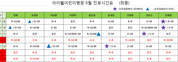 아이웰어린이병원 19.05.13~05.26 진료시간표입니다. 페이지 정보 작성자 관리자 작성일19-05-16 18:51 조회21,385회 관련링크 이전글 다음글 목록 본문 . 이전글 다음글 목록