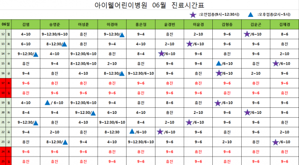 아이웰어린이병원 6.12~25일 시간표입니다. 페이지 정보 작성자 관리자 작성일17-05-29 18:02 조회25,109회 관련링크 이전글 다음글 목록 본문 6월 12일~25일 시간표입니다. 이전글 다음글 목록