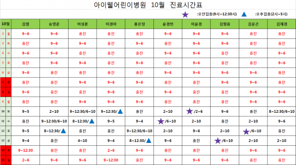 아이웰어린이병원 10.02~10.15 시간표입니다. 페이지 정보 작성자 관리자 작성일17-09-26 16:53 조회25,032회 관련링크 이전글 다음글 목록 본문 10월2일~10월15일 시간표입니다. 이전글 다음글 목록