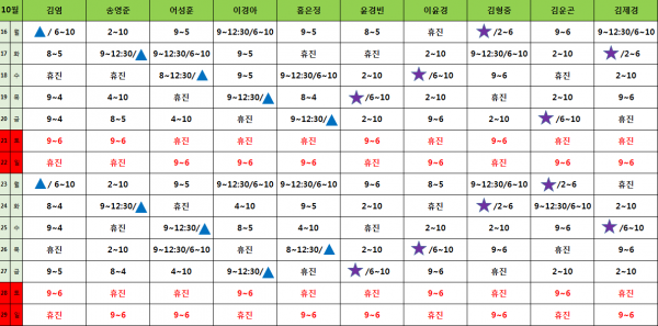 아이웰어린이병원 10월16일~29일 시간표입니다.