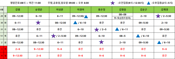 아이웰어린이병원 22.08.29~9.4 진료시간표입니다. 페이지 정보 작성자 관리자 작성일22-08-24 15:50 조회12,214회 관련링크 이전글 다음글 목록 본문 . 이전글 다음글 목록