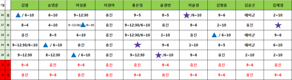 아이웰어린이병원 7.16~22일 시간표입니다.