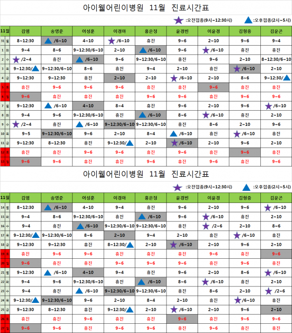 아이웰어린이병원 11월 진료시간표입니다. 페이지 정보 작성자 관리자 작성일16-11-04 14:43 조회25,387회 관련링크 이전글 다음글 목록 본문 11월 진료시간표 이전글 다음글 목록