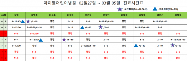 아이웰어린이병원 02월27일~03월05일 진료시간표입니다. 페이지 정보 작성자 관리자 작성일17-02-18 14:16 조회22,980회 관련링크 이전글 다음글 목록 본문 아이웰어린이병원 02월27일~03월05일 진료시간표입니다. 이전글 다음글 목록