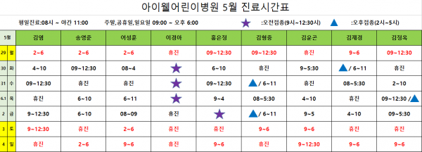 아이웰어린이병원 23.05.29~06.04 진료시간표안내 페이지 정보 작성자 관리자 작성일23-05-24 11:15 조회13,255회 관련링크 이전글 다음글 목록 본문 진료시간표 확인은 아이웰어린이병원 인스타그램에서도 확인 가능합니다. 이전글 다음글 목록