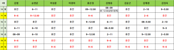 아이웰어린이병원 23.08.14~08.20 진료시간표안내입니다. 페이지 정보 작성자 관리자 작성일23-08-09 15:31 조회12,639회 관련링크 이전글 다음글 목록 본문 . 이전글 다음글 목록