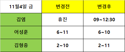 11월 4일 진료시간변경안내