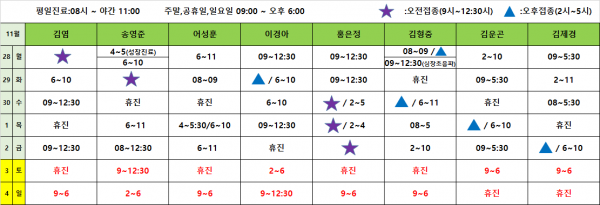 아이웰어린이병원 22.11.28~12.04진료시간표안내 페이지 정보 작성자 관리자 작성일22-11-24 17:24 조회11,873회 관련링크 이전글 다음글 목록 본문 . 이전글 다음글 목록