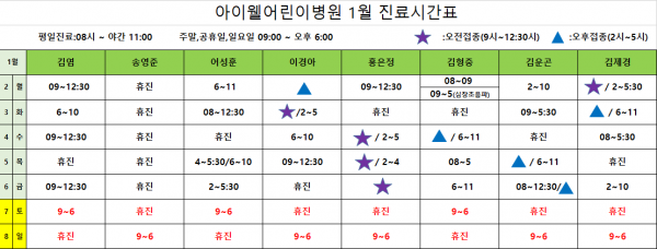 아이웰어린이병원 2023.01.02~01.08 진료시간표 안내입니다. 페이지 정보 작성자 관리자 작성일22-12-29 14:36 조회11,515회 관련링크 이전글 다음글 목록 본문 . 이전글 다음글 목록
