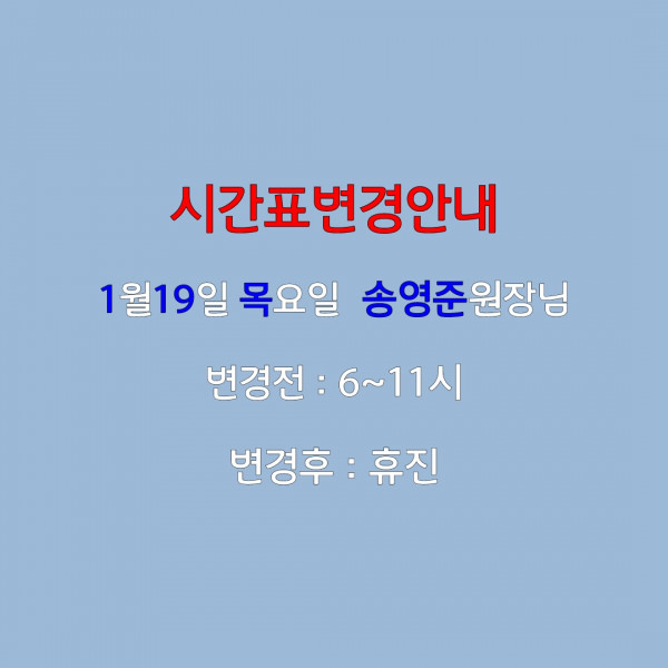 송영준원장님 1월 19일 진료시간표변경안내 > 월진료시간표