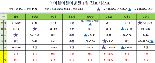 아이웰어린이병원 24.01.29~24.02.04 진료시간표안내입니다. 페이지 정보 작성자 관리자 작성일24-01-25 10:39 조회10,880회 관련링크 이전글 다음글 목록 본문 . 이전글 다음글 목록