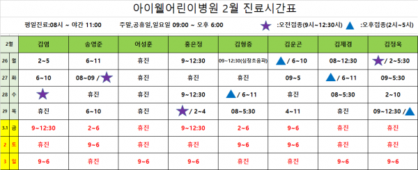 아이웰어린이병원 24.02.26~03.03 진료시간안내입니다. 페이지 정보 작성자 관리자 작성일24-02-23 09:32 조회9,183회 관련링크 이전글 다음글 목록 본문 . 이전글 다음글 목록