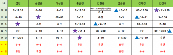 24.05.27~24.06.02 진료시간표안내입니다. 페이지 정보 작성자 관리자 작성일24-05-21 14:39 조회8,682회 관련링크 이전글 다음글 목록 본문 진료시간표는 아이웰어린이병원 인스타그램에서도 확인가능합니다. 이전글 다음글 목록