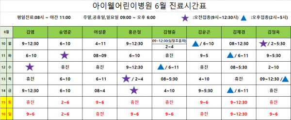 24.06.10~06.16 진료시간표안내입니다 > 월진료시간표