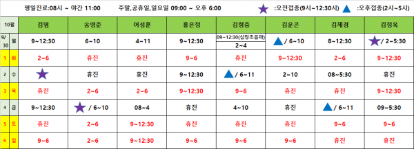 아이웰어린이병원 24.09.30~10.06 진료시간안내입니다. 페이지 정보 작성자 관리자 작성일24-09-25 11:19 조회7,614회 관련링크 이전글 다음글 목록 본문 진료시간표는 아이웰어린이병원 인스타그램에서도 확인가능합니다 이전글 다음글 목록
