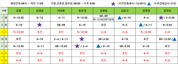 아이웰어린이병원 24.10.07~10.13 진료시간안내입니다. 페이지 정보 작성자 관리자 작성일24-10-03 15:35 조회7,302회 관련링크 이전글 다음글 목록 본문 진료시간표는 아이웰어린이병원 인스타그램에서도 확인가능합니다 이전글 다음글 목록