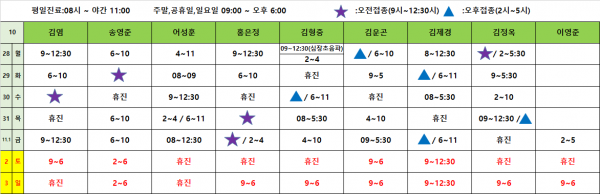 아이웰어린이병원 24.10.28~24.11.03 진료시간안내입니다. 페이지 정보 작성자 관리자 작성일24-10-24 10:31 조회7,275회 관련링크 이전글 다음글 목록 본문 진료시간표는 아이웰어린이병원 인스타그램에서도 확인가능합니다 이전글 다음글 목록