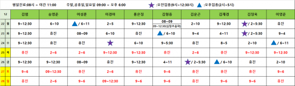 아이웰어린이병원 25.12.22~12.28 진료시간표입니다 페이지 정보 작성자 관리자 작성일25-12-18 13:59 조회226회 관련링크 이전글 목록 본문 진료시간표는 아이웰어린이병원 인스타그램에서도 확인 가능합니다. 예약취소는 카카오채널을 이용해주세요. 이전글 목록