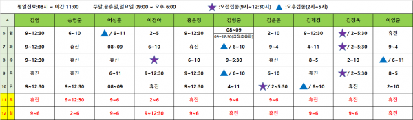 아이웰어린이병원 26.04.06~04.12 진료시간표입니다. 페이지 정보 작성자 관리자 작성일26-04-02 17:00 조회689회 관련링크 이전글 목록 본문 진료시간표는 아이웰어린이병원 인스타그램에서도 확인 가능합니다. 예약취소는 카카오채널을 이용해주세요. 이전글 목록